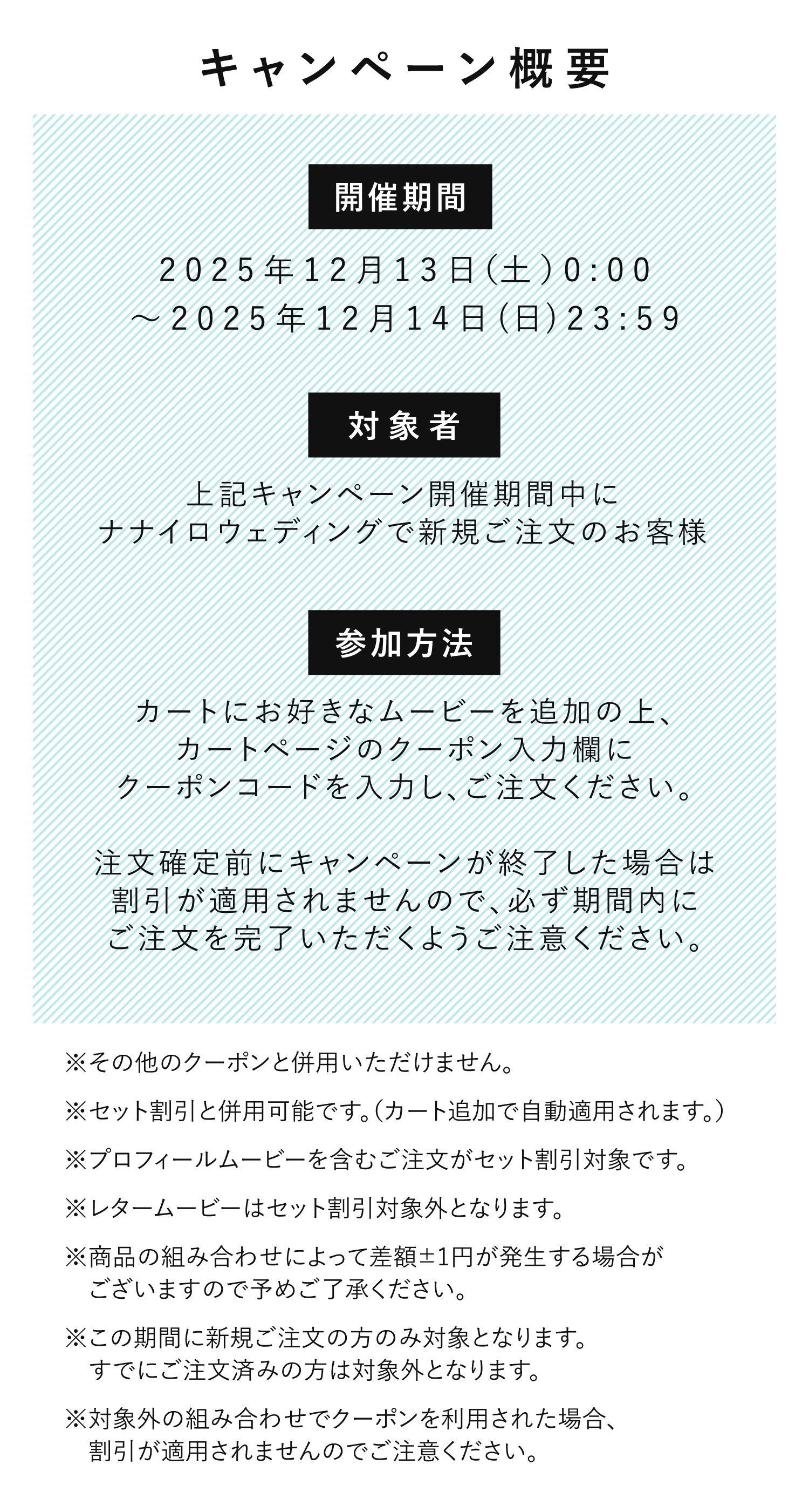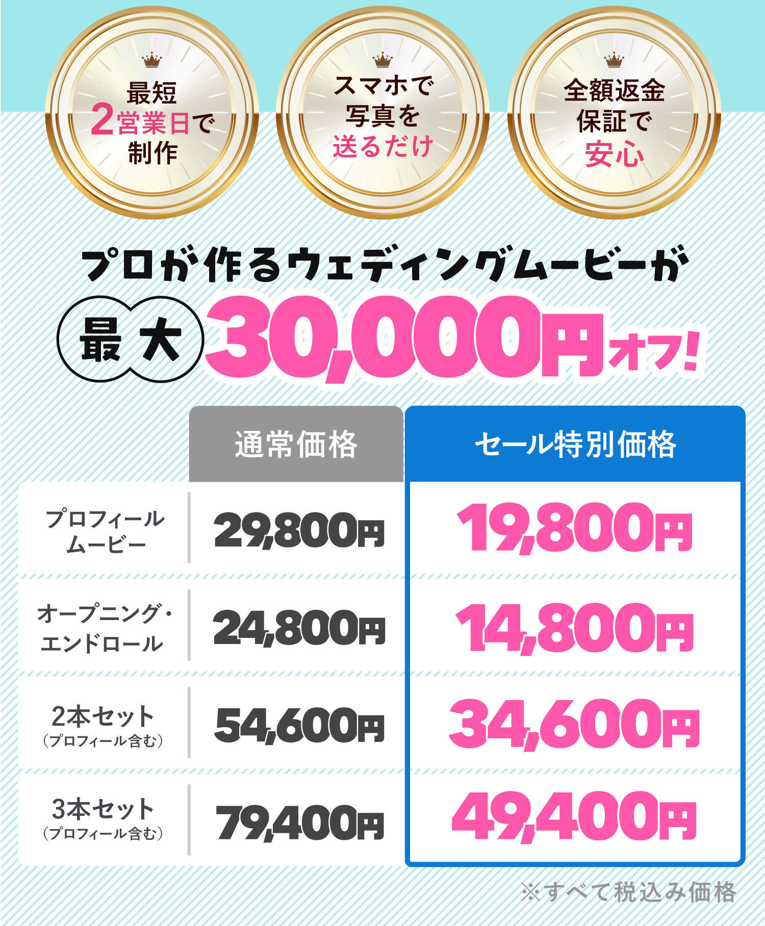 ご注文後に映像制作のための素材をご提出いただいてから、ムービー制作に着手いたします。